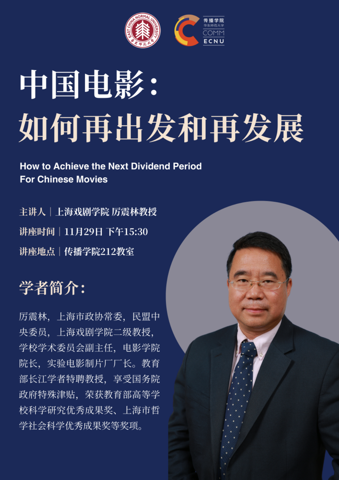 厉震林,上海市政协常委,民盟中央委员,上海戏剧国产直播 二级教授,学校国产直播 委员会副主任,电影国产直播 院长,实验电影制片厂厂长。荣获教育部高等学校科学国产直播 优秀成果奖,上海市哲学社会科学优秀成果奖等奖项。